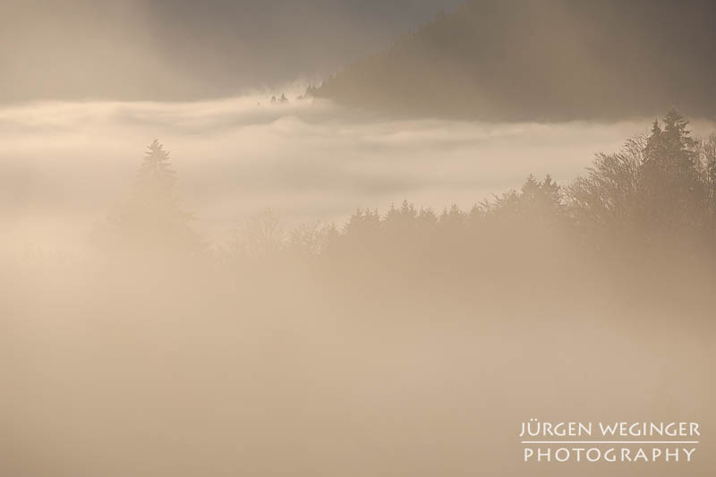 Das beste Indiz dafür, dass eine Location, ein Motiv, eine Situation richtig gut ist, man fotografiert über längere Zeit immer dasselbe. Immer wieder die frostigen Wälder im Nebel, nur mit marginalen Abweichungen, die man später zu Hause kaum unterscheiden oder beurteilen kann. Normalerweise reichen ein paar Bilder und fertig. Aber herrscht so grandioses Licht, hört man einfach nicht auf zu fotografieren. Ich wusste, das wird zäh bei der späteren Bildsichtung zu Hause.