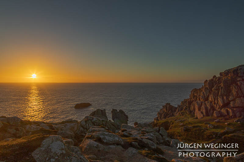 Nach dem Frühstück machte ich mich auf eine Wanderung entlang der Küste. Ich startete direkt bei meinem Hotel. Es ging über Cape Cornwall, der Küste entlang, bis zu einer historischen Stätte des Bergbaus. Cape Cornwall bietet ein paar herrliche Ausblicke auf spektakuläre Felsformationen, Küsten und Strandabschnitte. Da ich zur Mittagszeit unterwegs war und unter einem strahlend blauen Himmel marschieren durfte, waren die Möglichkeiten für eine ernsthafte Naturfotografie etwas eingeschränkt, aber nicht ganz unmöglich. Mich faszinierten eine Gruppe von Felsen etwas weiter draußen am Meer. Ich nahm meinen ND1000-Filter und versuchte, unter der strahlenden Sonne so lange Belichtungszeiten wie nur möglich zu erreichen, um das Wasser verschwimmen zu lassen und so dem Effekt des hohen Kontrastes entgegenzuwirken. Heraus kamen sehr spannende Langzeitaufnahmen unter der Mittagssonne.